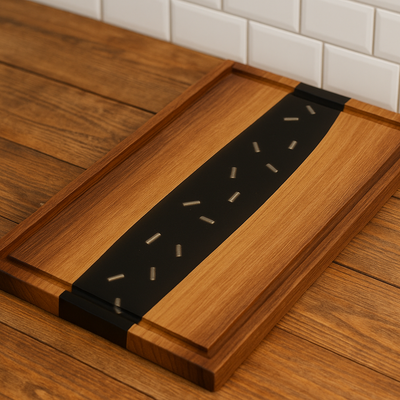 Dieses exklusive Schneidebrett verbindet traditionelle Handwerkskunst mit außergewöhnlichem Design. Gefertigt aus hochwertigem Massivholz besticht es durch seine warme Maserung und natürliche Eleganz. Das Highlight bildet der kunstvoll eingearbeitete Epoxidharz-Fluss, in dem echte Patronenhülsen eingebettet sind – ein absoluter Blickfang und garantiertes Unikat.